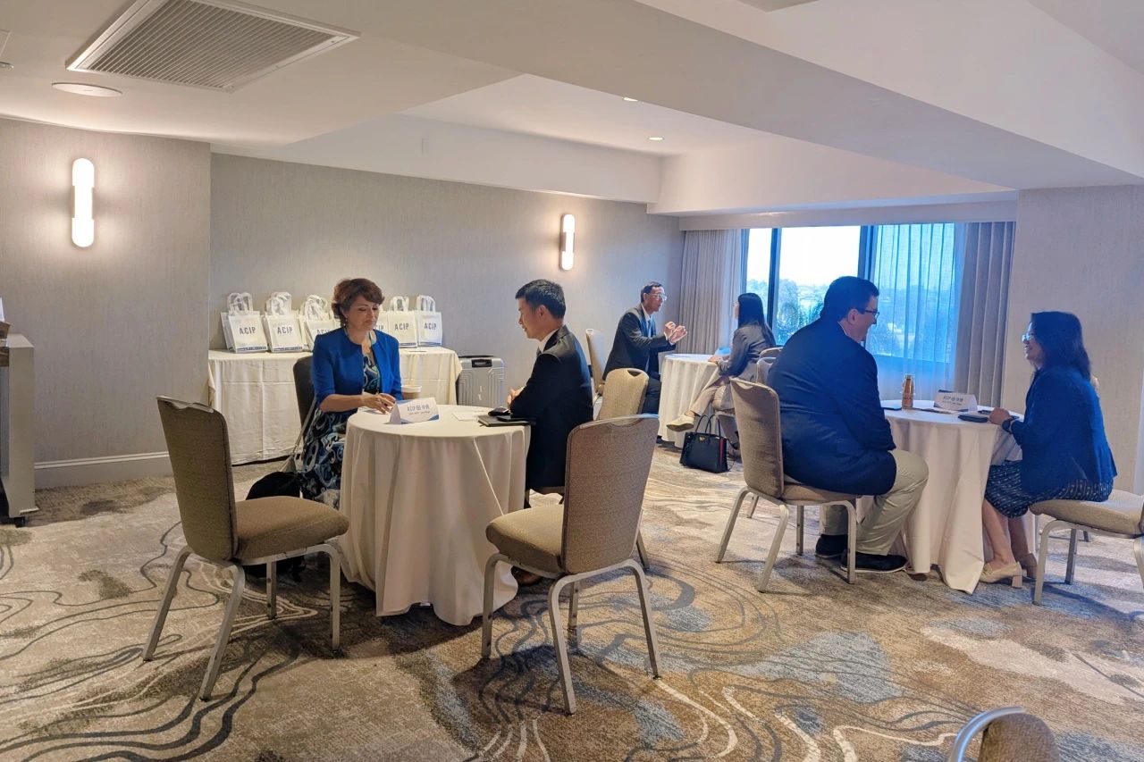 會(huì)客廳內(nèi),華進(jìn)代表團(tuán)與多家國際知識產(chǎn)權(quán)服務(wù)機(jī)構(gòu)及企業(yè)代表進(jìn)行接洽,向國際同行介紹了中國知識產(chǎn)權(quán)保護(hù)體系的最新進(jìn)展,同時(shí)積極就知識產(chǎn)權(quán)創(chuàng)新服務(wù)模式、區(qū)域性法律差異應(yīng)對等話題與外所展開交流。大家共同分析當(dāng)前全球知識產(chǎn)權(quán)生態(tài)系統(tǒng)的變化趨勢,并探討了服務(wù)機(jī)構(gòu)如何通過資源整合與專業(yè)協(xié)作,為企業(yè)提供更高效的跨境知識產(chǎn)權(quán)解決方案。