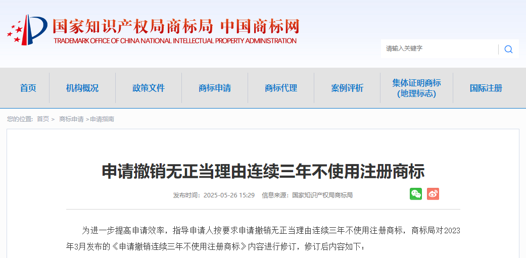 撤銷連續(xù)三年不使用注冊商標申請指南更新,最大變化在這里