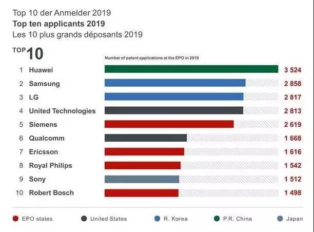 3月12日,歐洲專利局(EPO)發(fā)布了2019年專利排名。數(shù)據(jù)顯示,該局在2019年共收到181000多項專利申請,其中,中國專利申請多達12247項增長29.2%,而美國排名第四,德國和日本排在前三位。