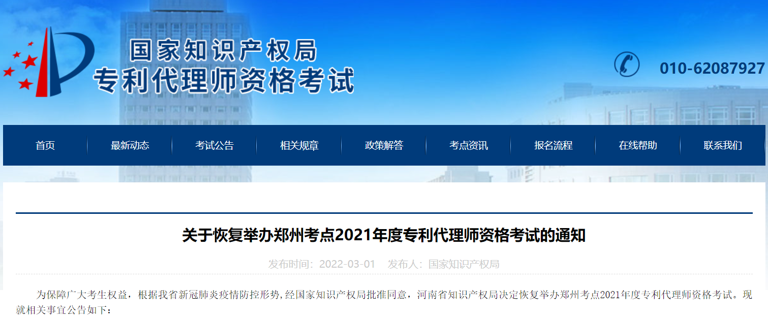 應試人員成績公布、成績復查、專利代理師資格授予、證書頒發(fā),請及時關注國家知識產權局后續(xù)通知以及我省知識產權局官網和“全國專利代理師資格考試”微信公眾號,保持手機電話等通訊暢通,及時了解鄭州市的最新信息。