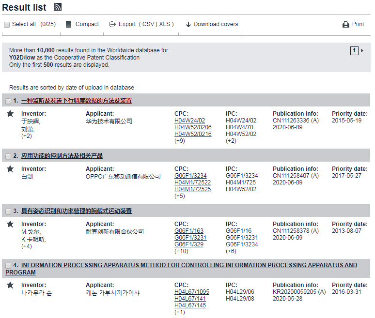 不同于WIPO依據(jù)《聯(lián)合國(guó)氣候變化框架公約》制定“IPC Green Inventory”,EPO通過(guò)引入綠色專利分類代碼來(lái)關(guān)注新技術(shù)發(fā)展、支持綠色技術(shù)創(chuàng)新。上述H04W、G06F、H04L并不在“IPC Green Inventory”清單中,可以根據(jù)實(shí)際,結(jié)合兩種分類體系,互相補(bǔ)充檢索結(jié)果。