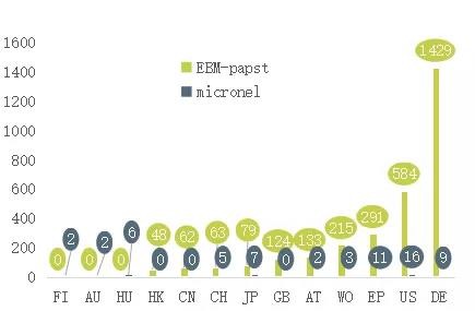 從左側圖可知,無擴展同族專利數(shù)為1019項,有擴展同族的擴展專利族為662項,占比39%。通常,有擴展同族的母專利原創(chuàng)性高,會在多個國家布局同族專利,也會針對母專利技術進行延續(xù)性創(chuàng)新,并產出新的同族子專利申請。