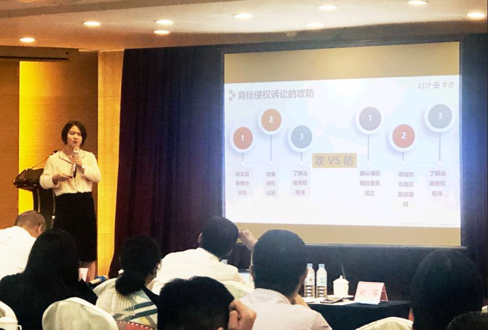 在商標(biāo)布局階段,她提出了企業(yè)商標(biāo)布局“四步走”準(zhǔn)備原則,并以近日熱點(diǎn)“Wechat”改名“Wecom”等為例,深入淺出地進(jìn)行了講解,對(duì)實(shí)際商標(biāo)布局中需要考量的因素,如企業(yè)名義、類別選擇、地區(qū)取舍等逐一進(jìn)行分析,為企業(yè)在全球商標(biāo)布局方案提供了全面而完善的建議。在商標(biāo)風(fēng)險(xiǎn)防控階段,她結(jié)合具體案例,提醒與會(huì)企業(yè)與嘉賓在商標(biāo)出海時(shí),遭遇波濤洶涌乃常有之事,應(yīng)積極應(yīng)對(duì)、及時(shí)處理。企業(yè)可通過監(jiān)測、事前的使用風(fēng)險(xiǎn)分析、靈活采取對(duì)抗程序、發(fā)送警告信及侵權(quán)訴訟等方式做好商標(biāo)風(fēng)險(xiǎn)防控。在提問階段,與會(huì)企業(yè)代表分享了其在印度、泰國商標(biāo)確權(quán)維權(quán)的困境,并就案件的具體應(yīng)對(duì)策略進(jìn)行了討論。在獲悉該企業(yè)商標(biāo)保護(hù)過程中的問題后,劉琴老師分享了自身的相關(guān)處理經(jīng)驗(yàn),并為企業(yè)代表破除商標(biāo)難題提供了思路。新絲路帶來新思路,本次培訓(xùn)結(jié)合“一帶一路”政策背景,為出海企業(yè)知識(shí)產(chǎn)權(quán)保護(hù)和風(fēng)控添磚加瓦。作為知識(shí)產(chǎn)權(quán)行業(yè)的一份子,華進(jìn)始終致力于為更多企業(yè)提供知識(shí)產(chǎn)權(quán)幫助,助力企業(yè)走得更遠(yuǎn),走得更好。劉琴自2011年加入華進(jìn)以來,一直從事商標(biāo)業(yè)務(wù),處理了大量國內(nèi)外商標(biāo)確權(quán)、維權(quán)事務(wù),尤其擅長處理駁回、異議、撤銷等疑難及綜合性商標(biāo)評(píng)審案件,多次替客戶成功取得商標(biāo)權(quán),也曾代表多個(gè)國際知名企業(yè)成功進(jìn)行全球商標(biāo)轉(zhuǎn)讓洽談等。